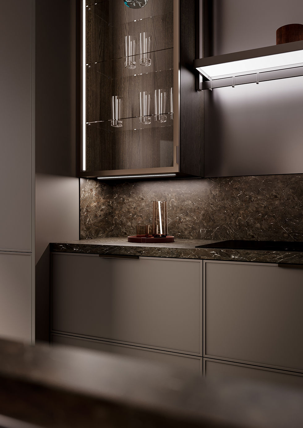 The initial calm of Leicht – which is always present – does yield to a playful creative side. This finds form in wonderful little stand-out moments, where form and function team up to deliver design details you’ll love. Smart lighting solutions. Clever surface contrasts. Even just the shape and line of a shelf. They all play a part with Leicht.